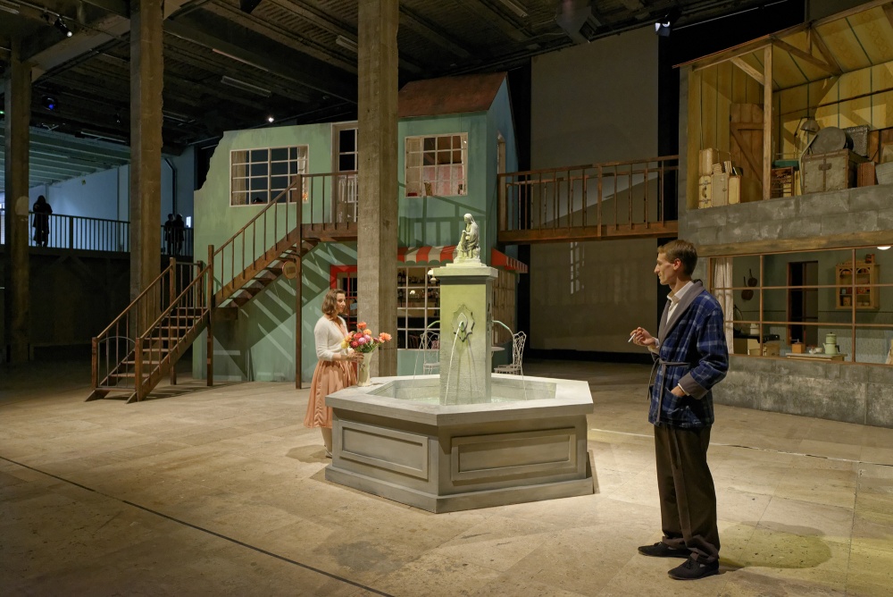 Jouée dans un décor suranné, la performance Bonjour est répétée à l’infini. Cette scène place le spectateur au cœur de la rencontre furtive d’un homme et d’une femme. Dans cette expérience théâtrale et immersive, Ragnar Kjartansson sublime le quotidien et ritualise les moments les plus anodins de l’existence humaine. //