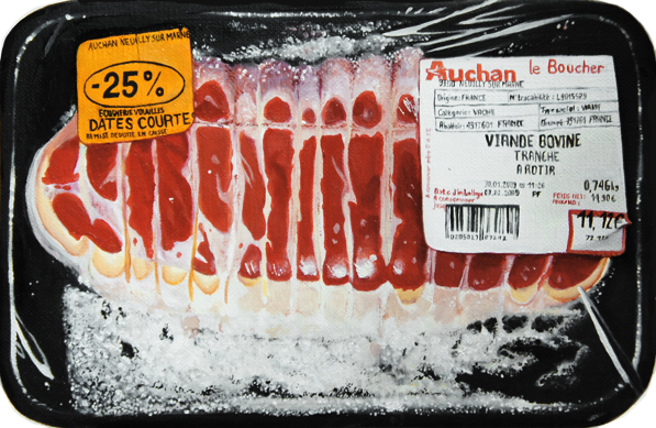 La nature morte, genre pictural illustrant des objets inanimés, est aujourd’hui l’une des sources majeures des artistes qui s’intéressent à la représentation du comestible. Les mises en scène débridées de Lazy Mom en reprennent les codes de composition et d’assemblage, les viandes sanglantes d’Aranthell, l’hyperréalisme. Si les contemporains utilisent la représentation du comestible afin de créer des figures de style visuelles, c’est parce qu’elle est souvent subversive, empreinte d’un humour assumé. Aussi, beaucoup de ces artistes contemporains affichent une identité visuelle dont la paternité avec le Pop Art et la culture populaire est palpable. Ils exploitent les couleurs criardes de certains aliments (un fruit pour Enrico Becker et Matt Harris) jusqu’à leur paroxysme et renforcent la composition en les mettant sur des fonds toujours plus acidulés.