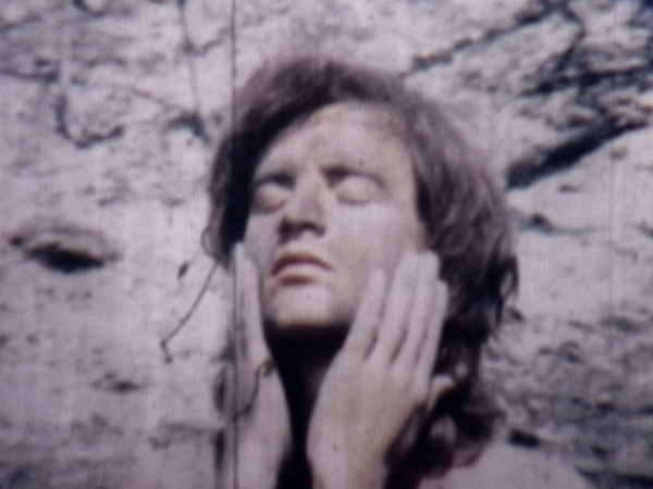 Si Marissa se languit dans la matière aquatique, la vidéo à son dos nous fait éprouver au contraire sècheresse et chaleur. Dans un environnement lanciné par le feu, on peut voir l’artiste, nu, prendre un bain de cendres et de poussières, se positionnant directement comme l’antagonisme de cette femme qui n’en parait que plus lointaine et inaccessible. Cendres (1975) nous apparaît comme un second travail de l’artiste sur lui-même, comme un moyen mystique de s’éprouver. « Je t’aime, jour et nuit » est une déclaration à sens unique, un boomerang ne renvoyant que le vide, que le spectateur comble en partie par son regard.