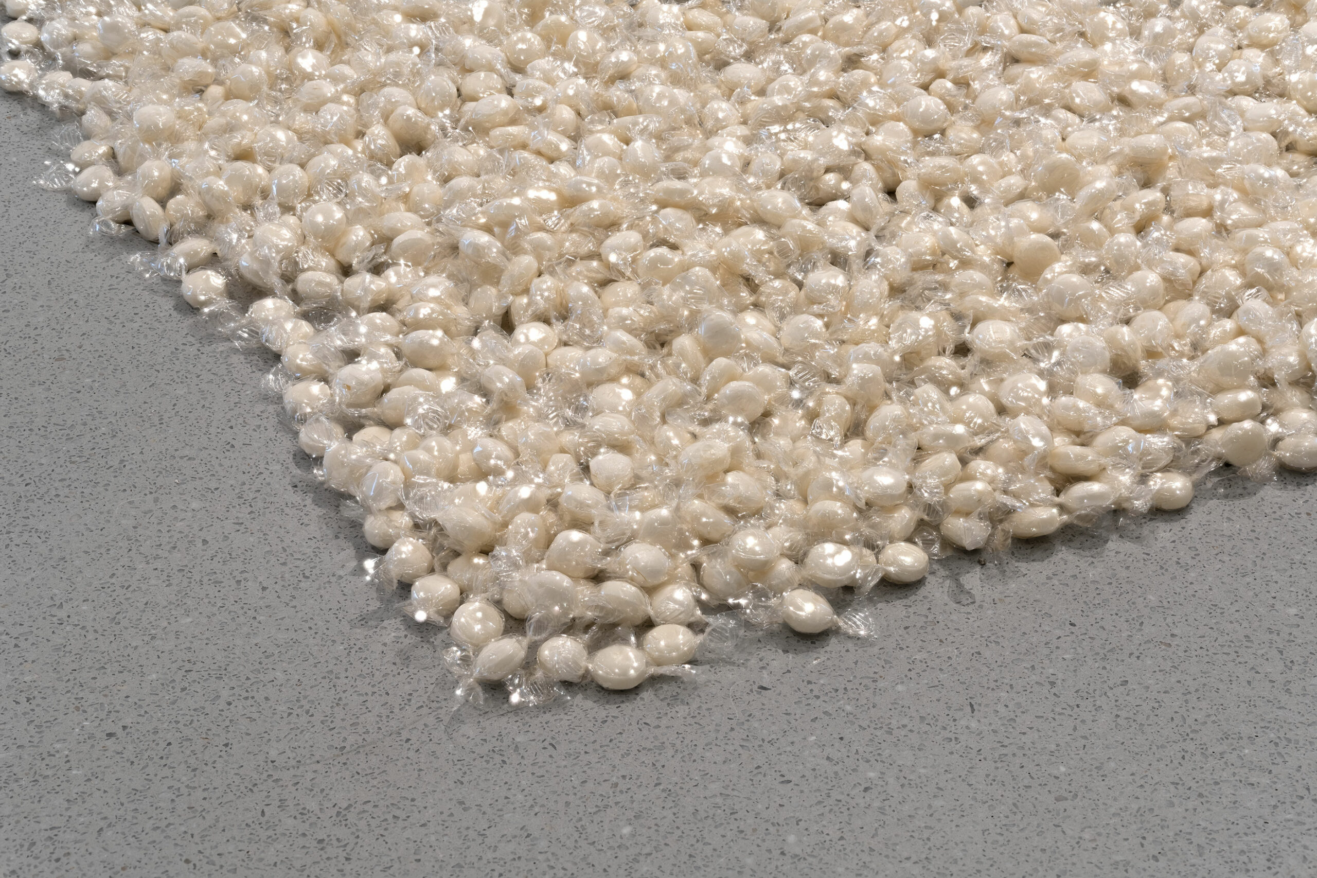 Felix Gonzalez-Torres, « Untitled » (Portrait of Dad) (détail), 1991, bonbons blancs dans papier d’emballage transparent, approvisionnement inépuisable, Pinault Collection. Photo : Nicolas Brasseur.