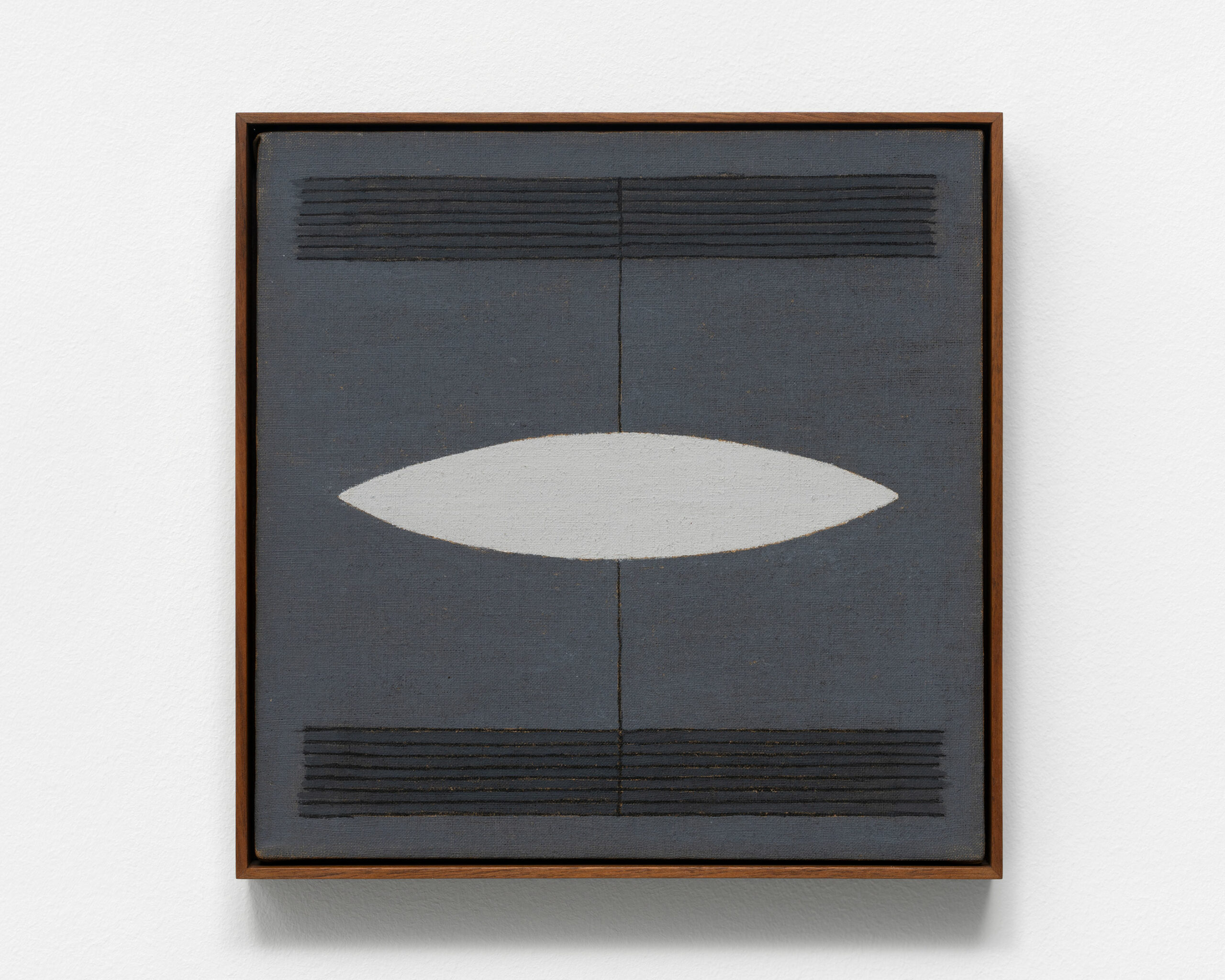 Agnes Martin, Blue-Grey Composition, 1962, huile sur toile, 30,5 × 30,5 cm (sans cadre), Pinault Collection. © Agnes Martin Foundation, New York / Adagp, Paris, 2025. Photo : Nicolas Brasseur.