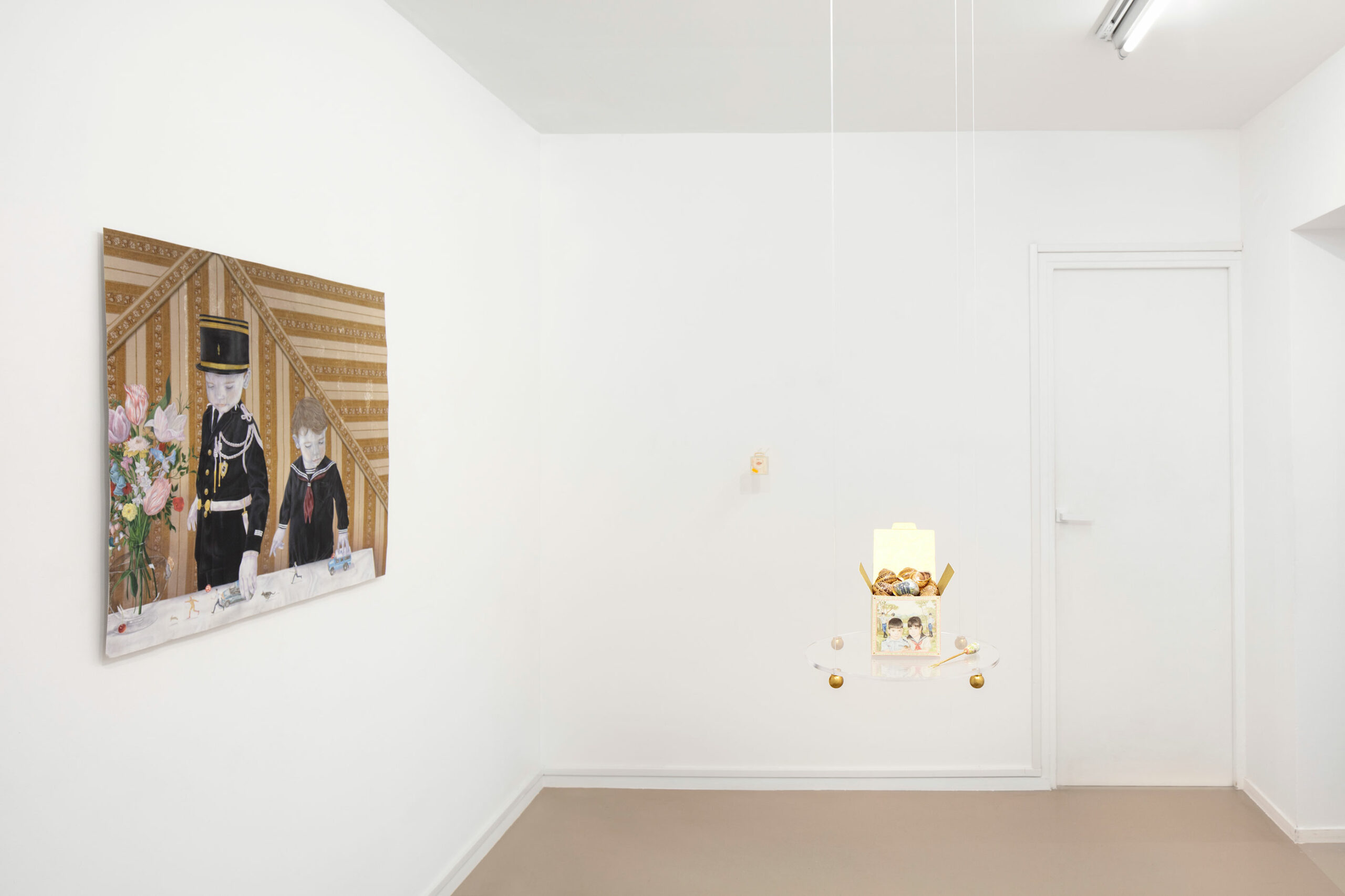 Dans une forme de continuité visuelle, on retrouve pour une œuvre réalisée sur papier peint (Fut-il de cruauté plus douce que l’espérance ?, 2025) le motif des gendarmes et des gastéropodes. Deux poupons jouent avec des personnages et des voitures de gendarmerie. Aux côtés d’un bouquet de fleurs qui n’a rien à envier à ceux du 17e siècle hollandais, un lapin s’échappe, poursuivi par un Arlequin lui-même pris en joue par un homme rattrapé par un chien à la gueule ouverte. C’est l’angoisse d’une course effrénée vécue en cauchemar dont la violence est adoucie par les teintes pastel de l’ensemble, la douceur et la rondeur des joues des deux enfants. C’est en définitive une œuvre qui se situe à la frontière entre fascination et répulsion, présent transfiguré et passé fantasmé. Une production nourrie des cultures japonaise, corse et italienne qui tend à épouser la tridimensionnalité par des “dessins-volumes” qui investissent l’espace d’exposition. Un goût contagieux pour les contes revisités où s’imbriquent souvenirs et rêves. Une œuvre en devenir qui, déjà, intrigue autant qu’elle séduit. •