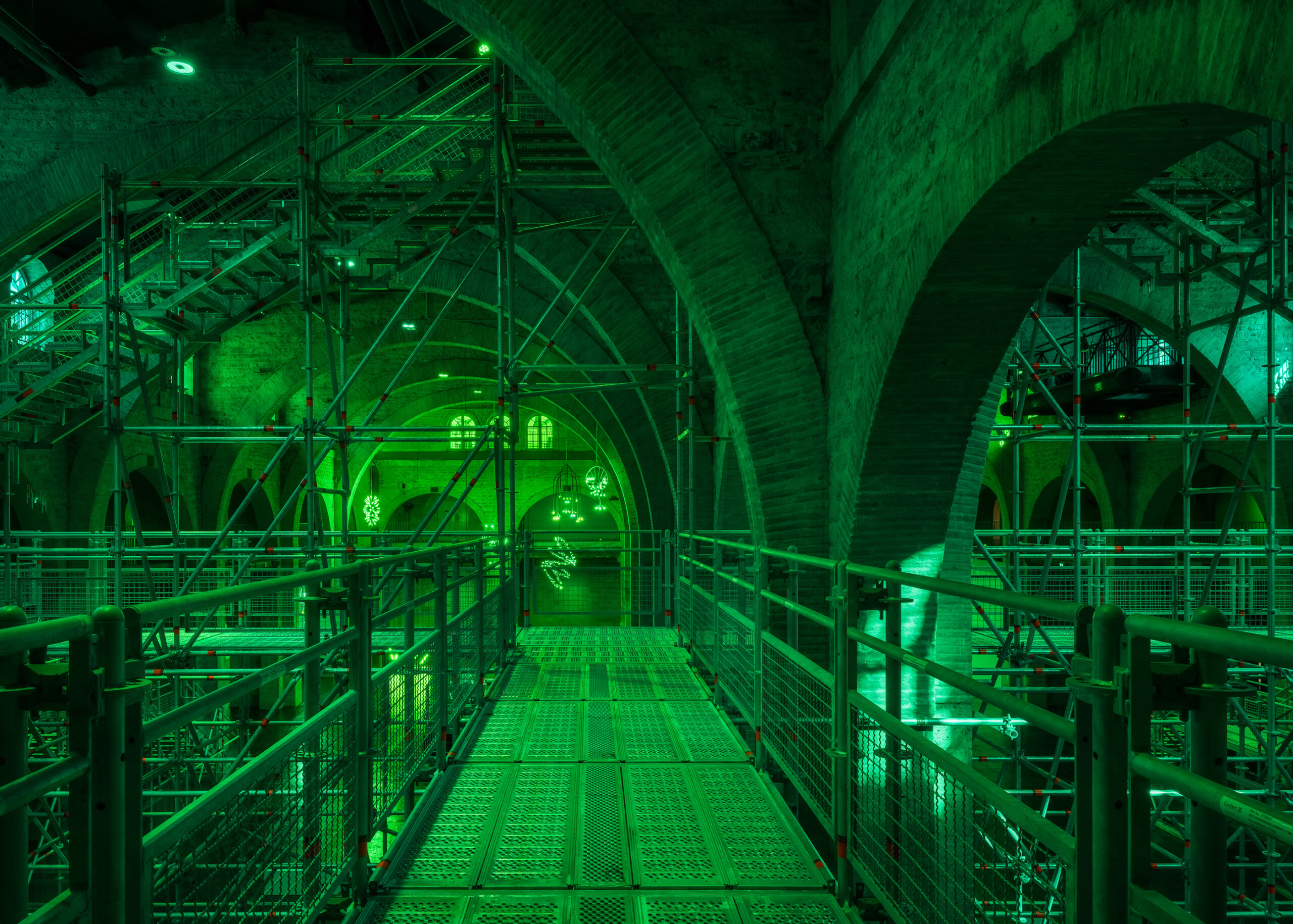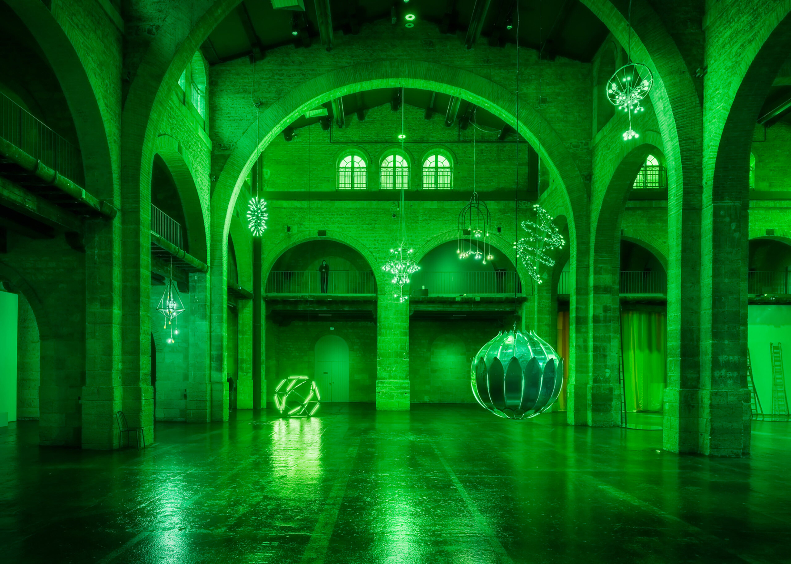 Une réserve toutefois : sans le livret distribué à l’entrée, l’expérience risque de rester opaque. Les œuvres sont belles, le dispositif est hypnotique, mais les strates de sens ne se lisent pas seules. Dans cette nef baignée de vert, on avance au ralenti, on revient sur ses pas, on rallume sa torche. •